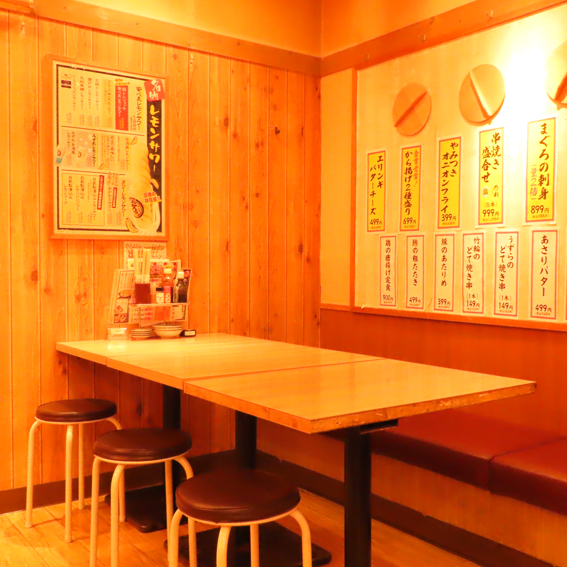 【麻生駅からすぐの好立地】ゆったりとお寛ぎいただける4名様用テーブル席をご用意しております!友人や家族とわいわい楽しくお食事を楽しむのにぴったりなスペースで、周囲を気にせず盛り上がれます。賑やかな雰囲気の中、美味しい料理と共に素敵なひとときをお過ごしください!