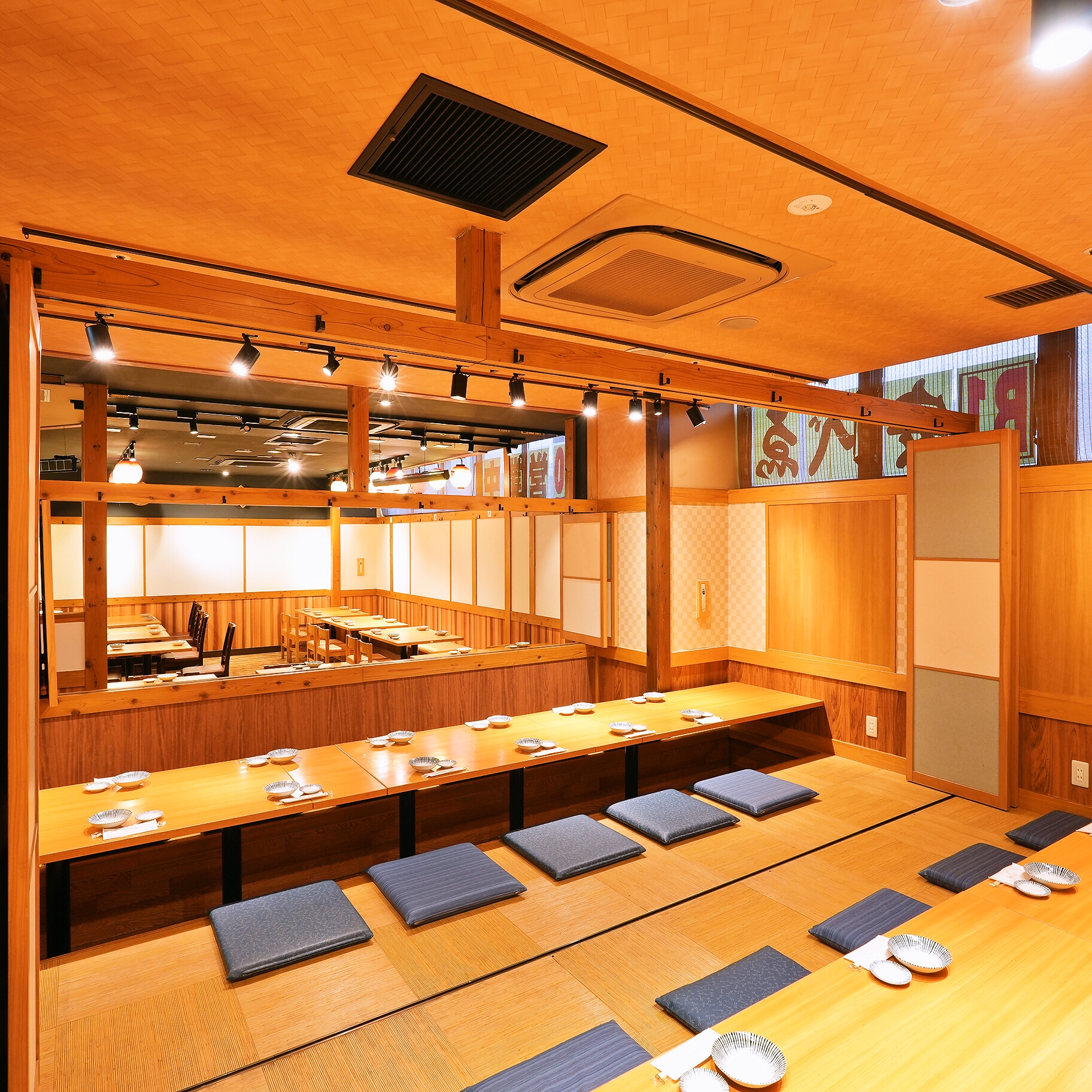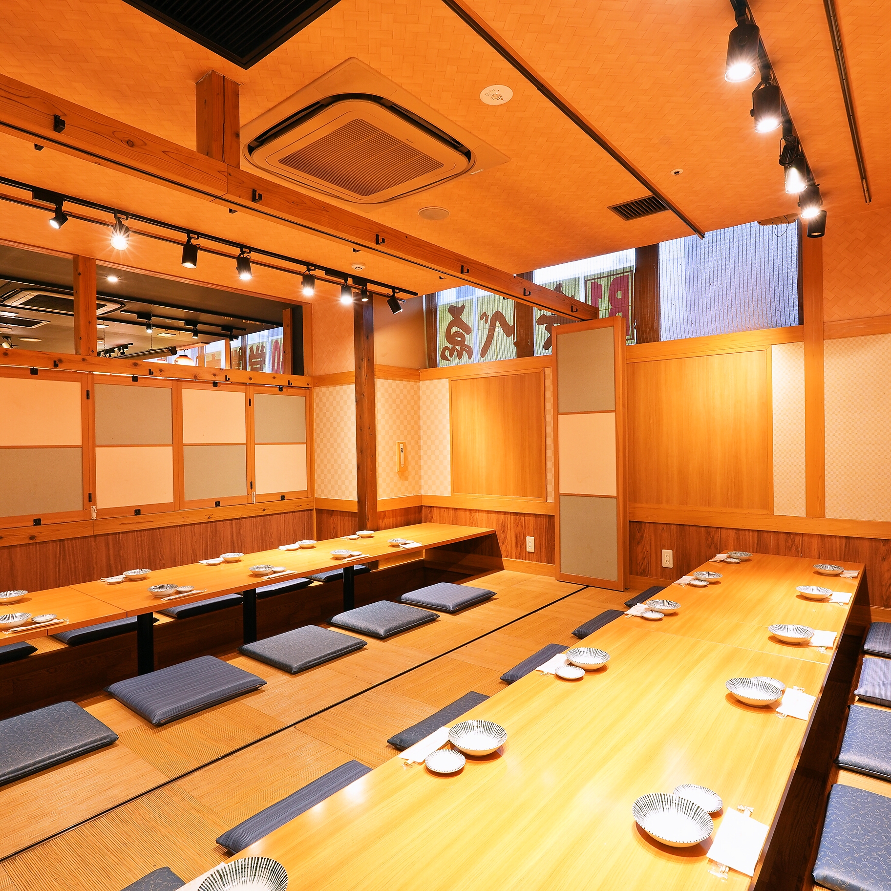 【貸切OK!】開放感溢れるお席を完備しております。最大60名様までご利用可能な空間もあり、忘年会・新年会・同窓会等の各種宴会に是非ご利用ください。