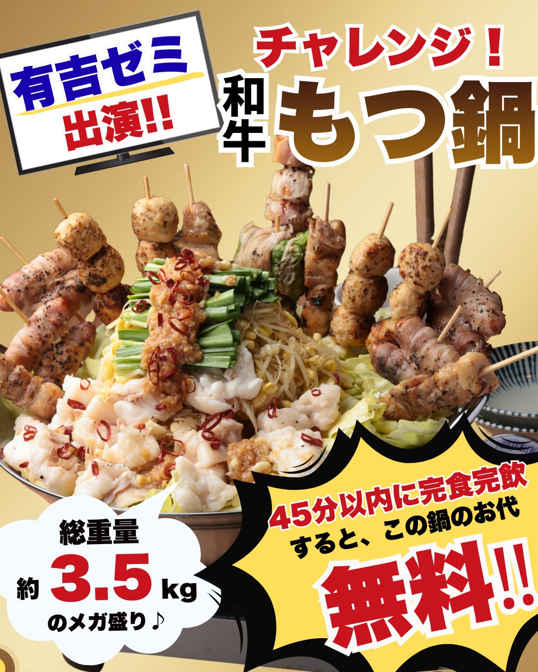 最初に出てくるメニューは、看板料理の明太もつ鍋と野菜巻き串!ほかにも定番のおつまみや串物はもちろん、濃厚鶏白湯で味わう名物おでんや、旨い酒と最強タッグ!魚料理、がっつり食べたい時にぴったりな熱々メニューなど充実した品々です。開放的で心地よい明りに包まれる空間の中、飲み会、女子会などさまざまなシーンでご利用ください。