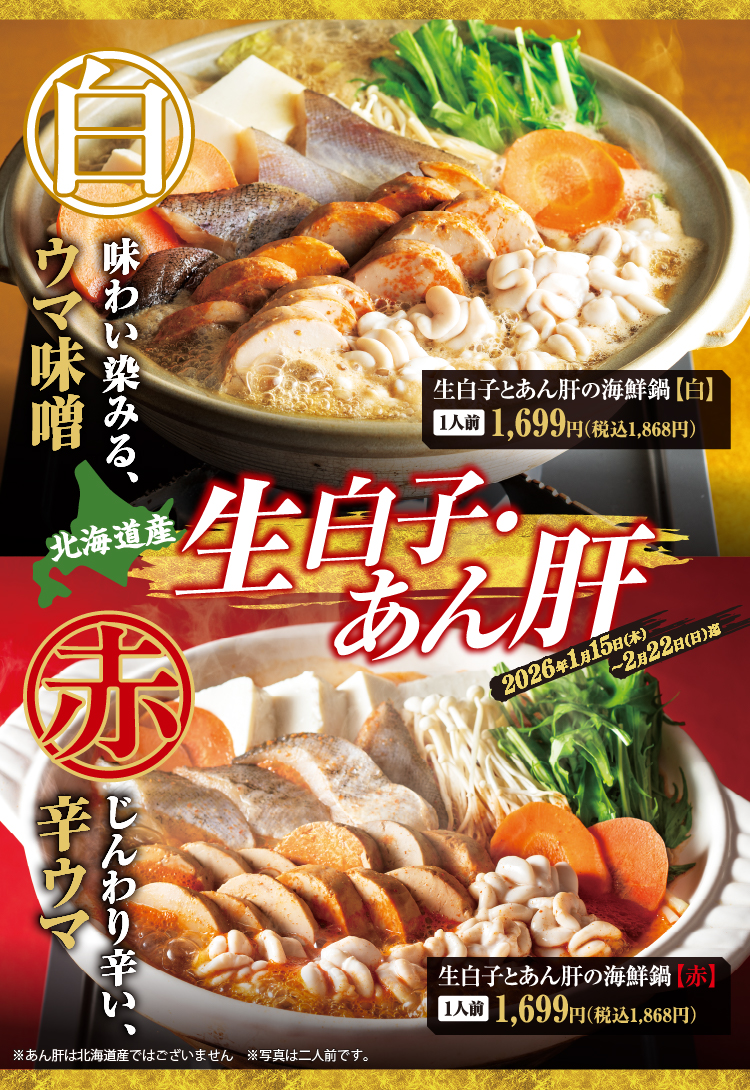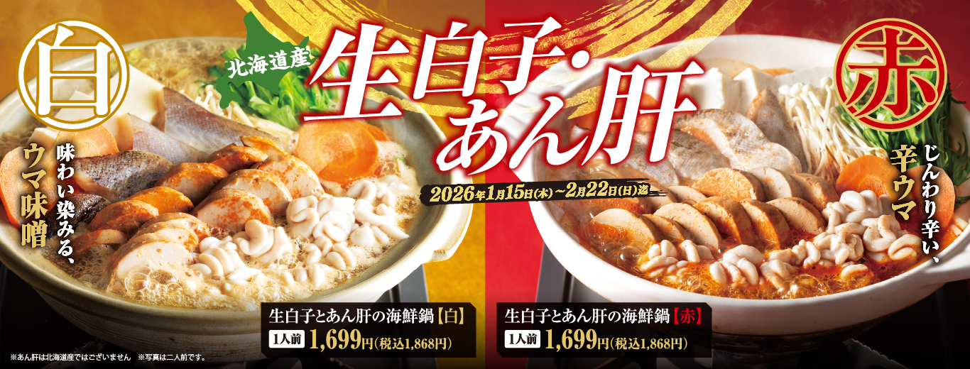 寒さ残る季節は、贅沢な“ごちそう鍋”で乾杯!〆のカニ味噌雑炊まで美味しい「本ズワイガニ入り海鮮鍋」、豪華な「とらふぐのちり鍋」、上品な甘みが特徴の「黒毛和牛こうねの牛鍋」がメインの3コースをご用意しております♪