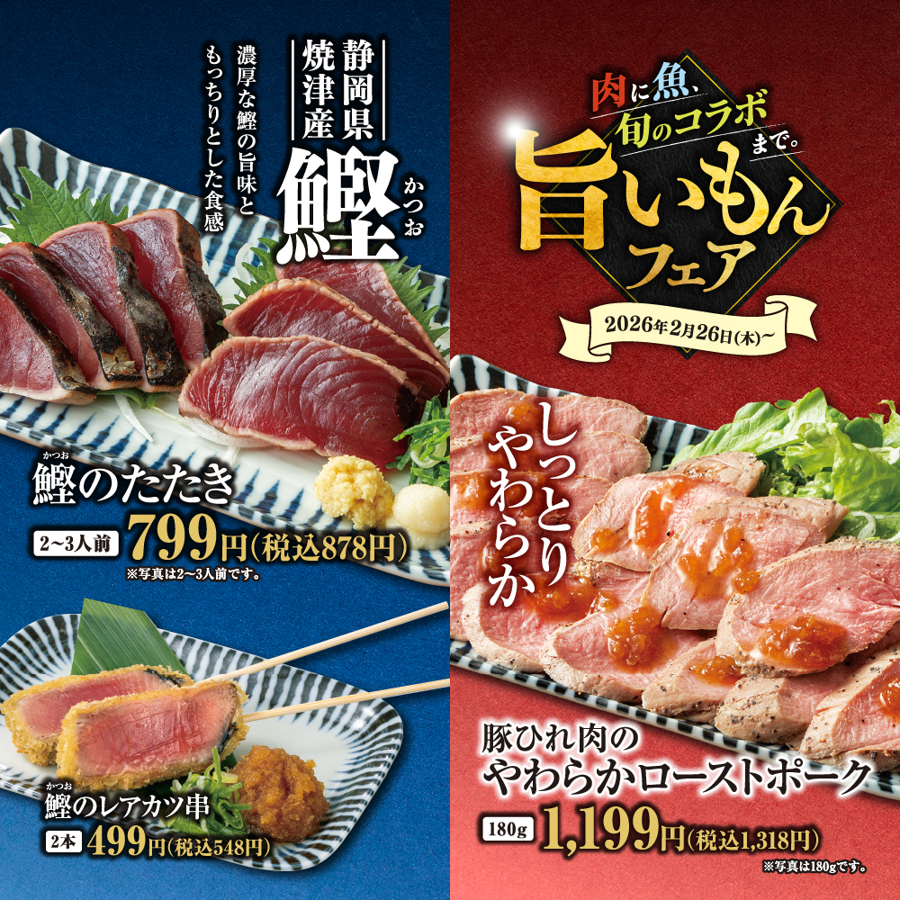 【利用条件】要予約/指定宴会コースご予約に限る/期間中の日~木曜は「飲み放題3hに延長」or「グランドメニュー掲載ドリンク全種飲み放題」の特典が無料/祝日・祝前日利用不可/「2/22・2/23・3/19・4/28・4/29・5/3・5/4・5/5・5/6」は特典対象外/他券・他サービス併用不可