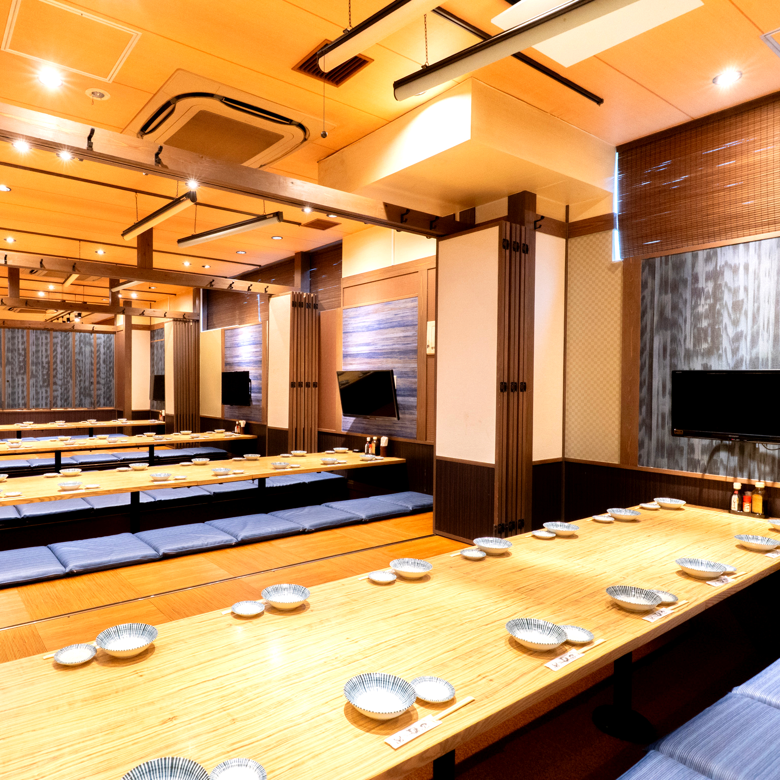 【最大71名様までご利用可能】<10名以上・20名以上・30名以上用途に応じたお席有>お座敷やテーブル席をはじめ、人数や用途に合わせたお席をご用意可能です。歓迎会・送別会など各種会社宴会や、同窓会、二次会など様々なシーンにご利用いただけます。大人数でのご宴会や貸し切りもお気軽にご相談ください。※写真は系列店です。