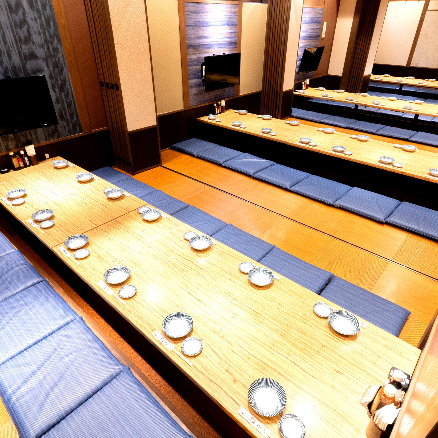 【貸切OK】掘りごたつのお座敷をはじめ、人数や用途に合わせたお席をご用意可能です。忘年会・新年会など各種会社宴会や、同窓会、二次会など様々なシーンにご利用いただけます。大人数でのご宴会や貸し切りもお気軽にご相談ください。